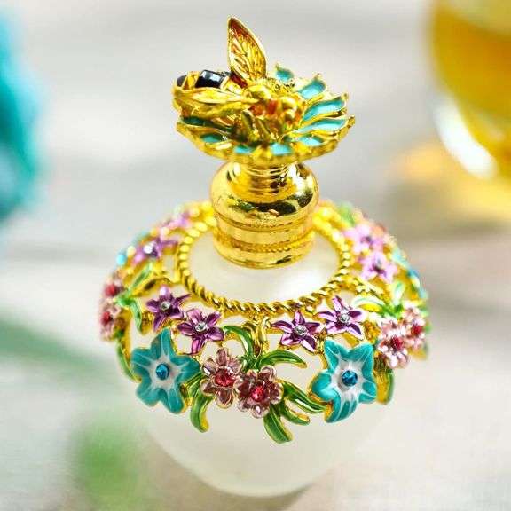 Fancy Glass Perfume Bottle with Flowers & Bee Charm