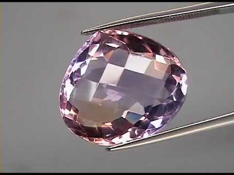 This is a gorgeous gemstone. Its color palette is stunning, exhibiting a pastel violet hue with touches of gold that create ribbons of pink where they meet. The checkerboard top of this piece takes full advantage of its premium luster while glittering framed flashing dances beneath, creating a brilliant display. Measuring 18.9mm x 16.7mm x 10.6mm this ametrine has fantastic size and crisp SI clarity. Sourced from Bolivia. Untreated!