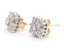Set of 10kt Yellow gold diamond square cluster necklace and matching stud earrings