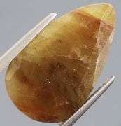 Look at the unique color and liquid luster of this fully natural sapphire! Sourced from Madagascar, this piece exhibits a rich raw honey coupled with red rivers which displays the intermingling of different minerals that influence this pieces natural color palette. It has great size, measuring 21.4mm x 12.8mm x 5.3mm. Untreated!