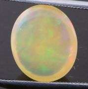 This is a fantastic collectors piece. Referred to as a jelly opal, it has a rolling patchwork pattern with full body rainbow flashing in electric greens, golds, and reds with touches of blue. It has a fully transparent body, and is covered by a glistening liquid luster. Sourced from Welo, Ethiopia, this large example measures 11.8mm x 10.1mm x 4.6mm. Untreated!