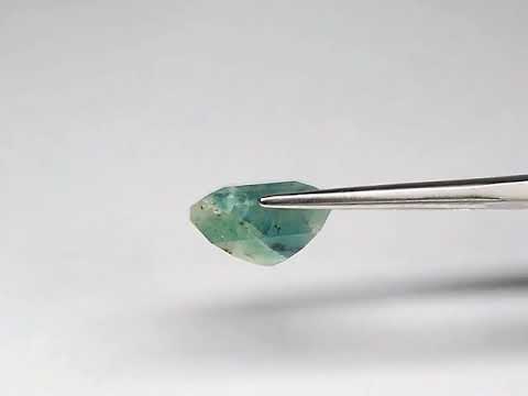 The color of this gem type is rarely found in nature, and out of these rare gemstones, this one is unique. It presents a bi-color blue green to frosted green hue with the addition white and blonde swirling color saturation under a glistening luster. This scarce gemtype is known by collectors and connoisseurs as one of the rarest in the world, and is highly sought after. It measures an impressive 12.3mm x 12.2mm x 7.3mm, and is untreated. Sourced from Madagascar.