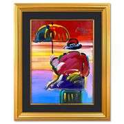 "Umbrella Man" is a one-of-a-kind mixed media on paper, hand signed by Peter Max. The piece comes custom framed with a backside cutout to display Peter Max Studio registration number 252183 certifying authenticity. Measures approximately 44.5" x 36" (frame), 32.5" x 24" (image). This item requires special handling and may have a longer than usual turnaround.