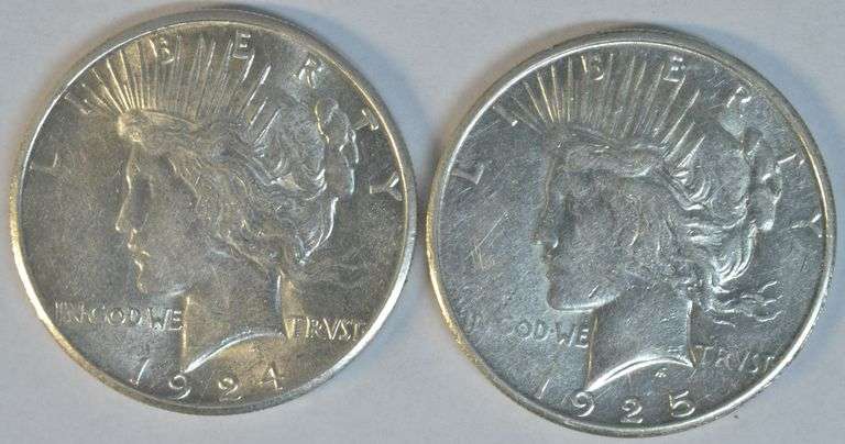 Ten each 1922 and 1923 Peace Silver Dollars that are lustrous-white and flashy slider/BU examples.