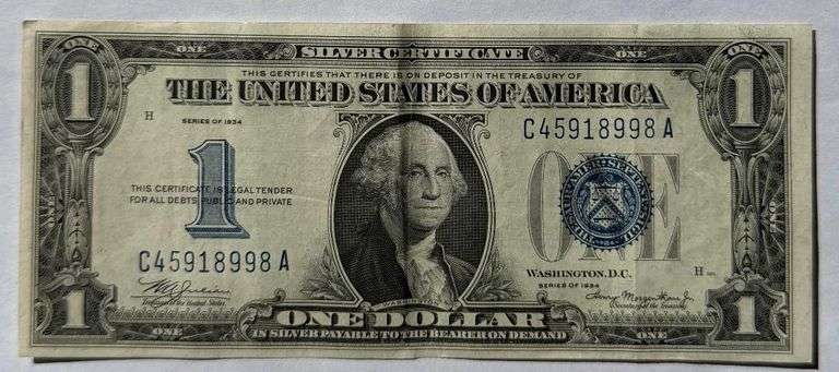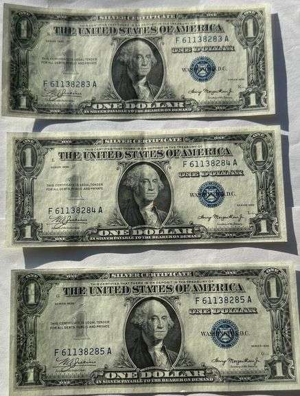 Three $10 Cleveland 1934 A FRN. Fr2006. Three vertical creases. Light soiling/ toning. One guide mark and strong green reverse. Seals the same color From a nice condition collection of small size notes