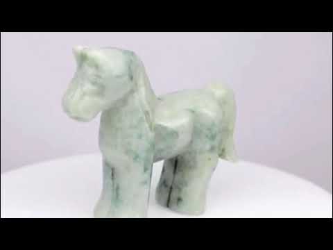 The unique patterning of the Burmese mossy jade gives this carving the feeling of antiquity, which makes sense, as technically it is millions of years old. The jade that is, not the carving. Its beautifully dappled effect also ads a touch of realism to its coat resembling a French Percheron, if Percherons had glossy lusters. This exotic piece was made from pure jadeite jade sourced from Myanmar (formerly Burma), and measures 47.5mm x 42.7mm x 15.7mm. Don't miss this unique hand carved art!
