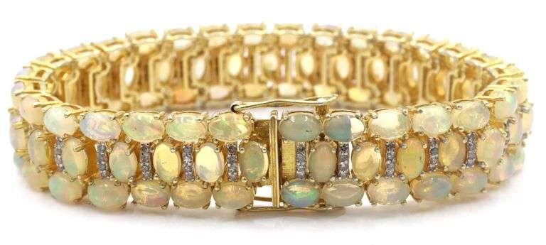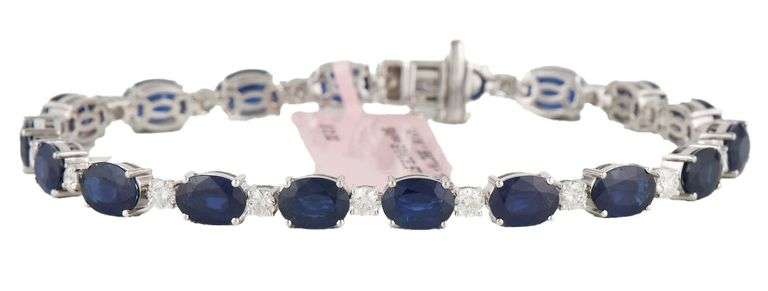 Awesome 50.89CTW Oval Emerald-Cut Blue Topaz & Diamond Bracelet in 14K White Gold Over Sterling Silver. This darling bracelet features 18 oval Emerald-cut Blue Topaz gemstones of 50.89CTW and 126 Natural Earth mined round single cut faceted Diamonds of 1.40CTW. The total weight of the bracelet is 26.30 grams and measures 7.25-inches in length and 10.10 mm in width. Comes with C.R.G. Certificate.