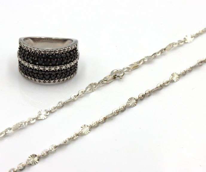 Group lot of vintage 925 sterling silver jewelry. Half moon earrings. Italian 22 inches Rope chain necklace. Cubic zirconia ring. Ring size 8". Total weight of lot 32.90 grams.