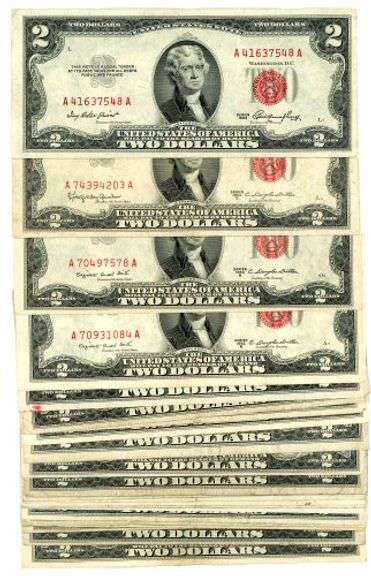 24 Nice mixed 1953 & 1963 Series $2 Red Seals in mostly VF to XF