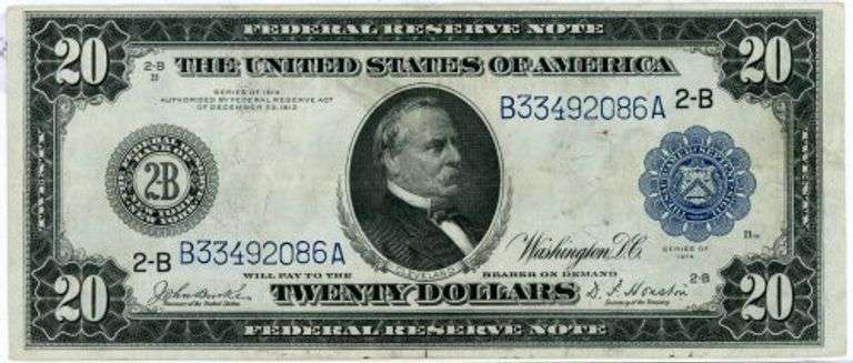 High end 1914 Series Large Size $20 Federal Reserve Note (2-B).