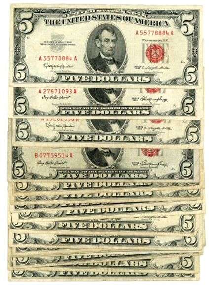 Larger lot of 18 mixed 1953 & 1963 Series $5 Red Seal notes