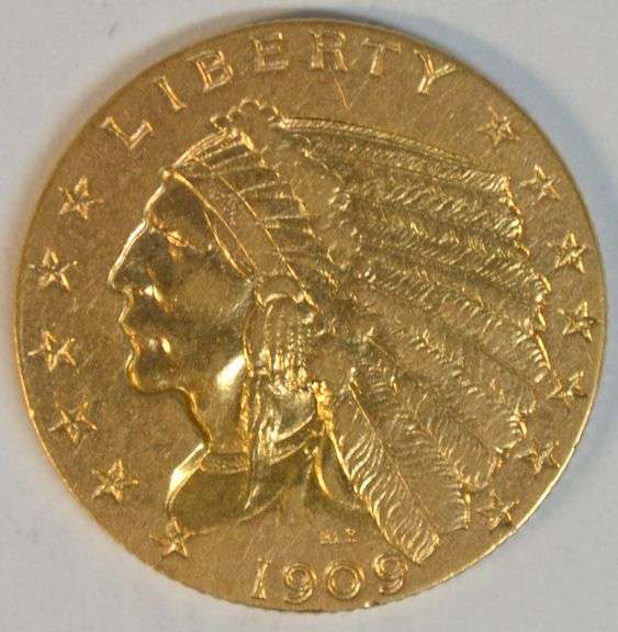 Very Scarce choice BU 1909 $2.50 Indian Gold Piece. PCGS MS62