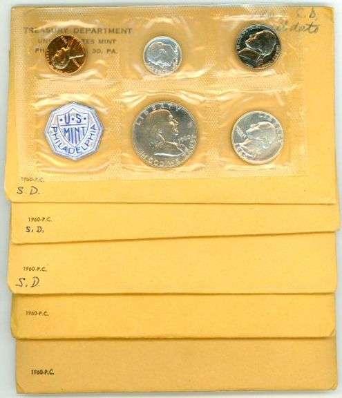 Great lot of five (5) 1960 Small Date Proof Sets in original envelopes