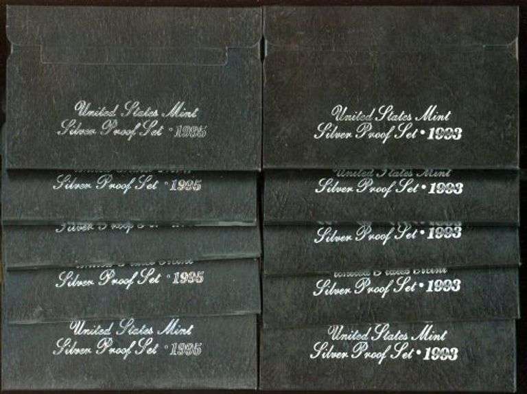 Lot of 10 Silver US Proof Sets in Bow w/CoA: 1993 & 1995