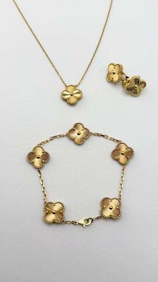 18KT White Gold Mother of Pearl Clover Post and Clip earrings. 6.7 grams