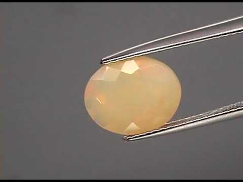 The ivory white hue of this opal is the perfect backdrop for its mix of floral and block patterned play of color. Yellows, greens, and reds roll across its face in a smoldering display accented by allusive touches of cobalt blue that only present at certain angles. Since opals have less density than other gems you get a better weight to size ratio, so its 1.72 carat weight translates to an impressive 10.9mm x 8.8mm x 5.2mm. This piece was sourced from Ethiopia and is untreated.