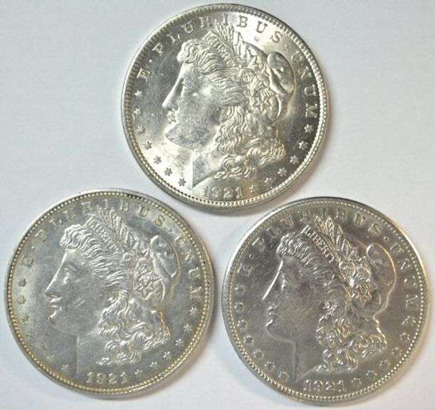 Real flashy-white top end 1921 P-D-S Morgan Silver Dollars