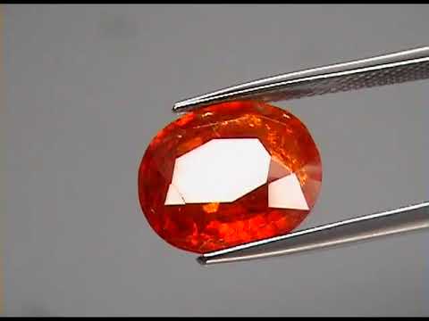 This is an fantastic example of REAL Namibian spessartite garnet. The rich red orange hue is reminiscent of fall spices and has medium saturation with smokey clarity, and is accented by a mix of vibrant liquid and glittering flashing. It has a gorgeous oval cut, and every facet is covered with a glistening superior luster. Measuring a whopping 12.6mm x 10.4mm x 5.8mm it has incredible size, and is all natural with no treatments.