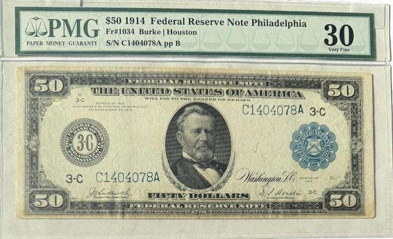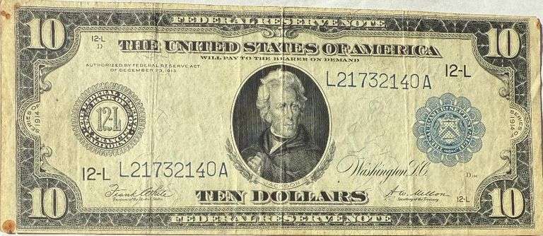 $100 Cleveland Series of 1914 FRN. Fr 1097. Burke Glass. Raw note Fairly clean with honest use . Nice portrait . Two light bands with large fibers. Reasonably nice centering and no pin holes or tears. Minor light stain next to the portrait. Does not go through to the reverse. Little tougher note to find