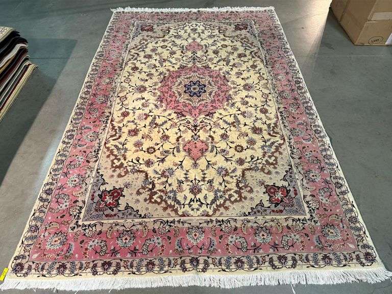 | Fine Persian Timeless Nain design silk and wool rug, in unique Royal blue, Ivory and multi accent colors, veggie dye natural wool and silk high light pile, cotton foundation, hand knotted in India 8x10.2 |