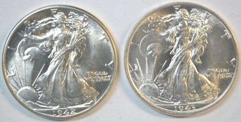 Superb Gem BU 1942 and 1943 Walking Liberty Half Dollars