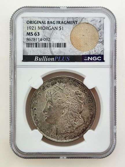 1921 Morgan Silver Dollar, NGC MS63 - Original Bag Fragment