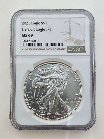 2021 T-1 Heraldic American Silver Eagle, NGC MS69