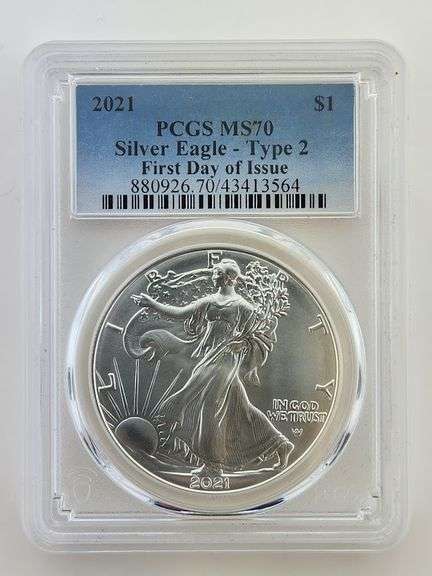 2021 Type 2 American Silver Eagle, PCGS MS70 FDOI
