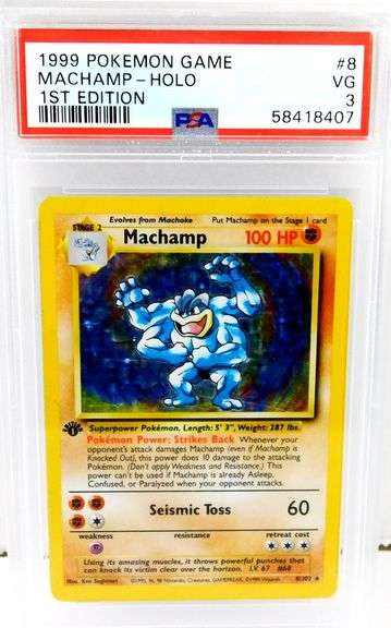 Pokémon 1999 Machamp 1st Edition Holo Card, 3 VG