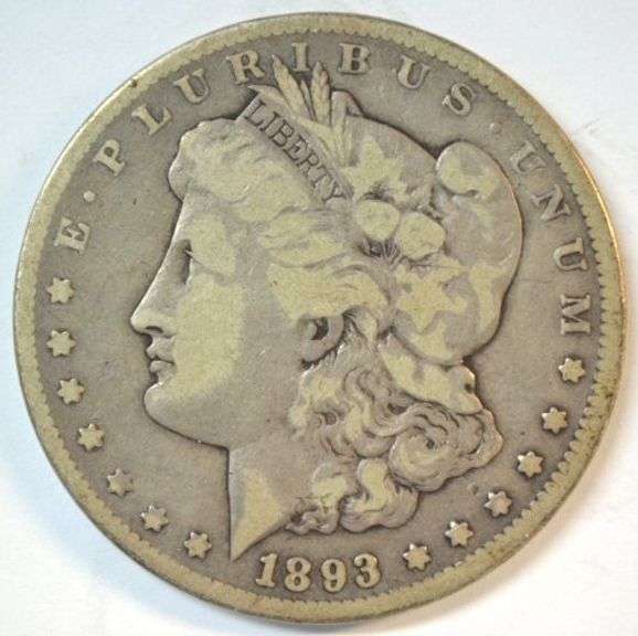 Very Rare 1893-CC Morgan Silver Dollar in F/VF