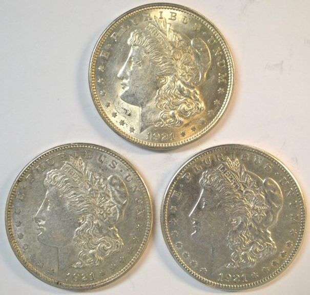 Lustrous 1921 P-D-S Morgan Silver Dollars