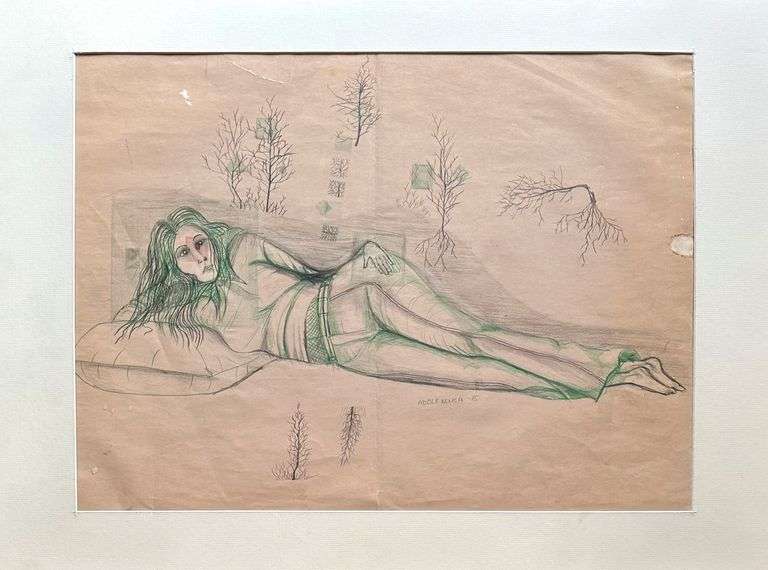Rare Peter Max Original Mixed Media Walking In Reeds, 1999