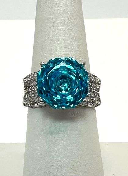 Beautiful 14 kt White Gold Plate 5 Ct Simulated Swiss Blue Topaz Ring