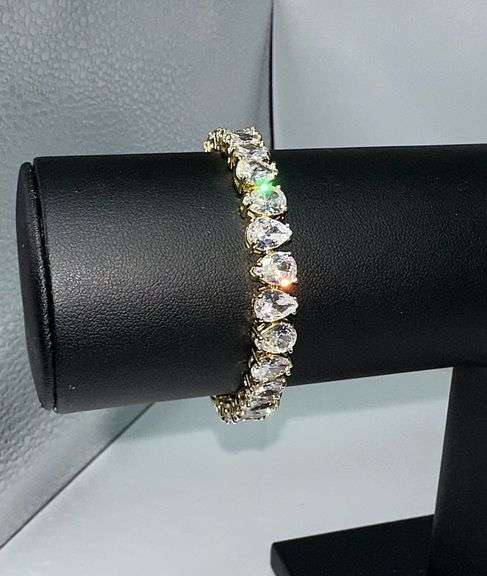 18 Kt Yellow Gold Plated Sparkling 26 Stone Count Pear Cut Tennis Bracelet