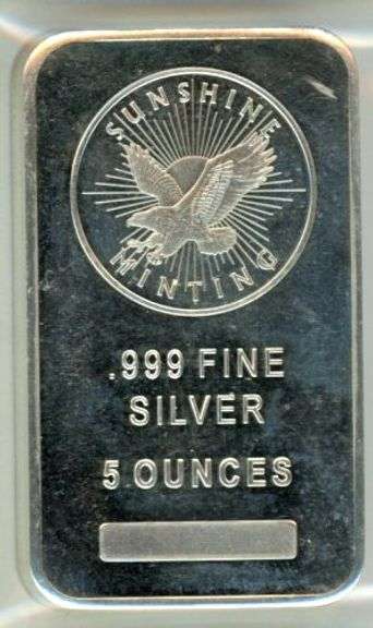 Lovely Sunshine Mint pure .999 fine Silver 5 Troy oz bar in plastic