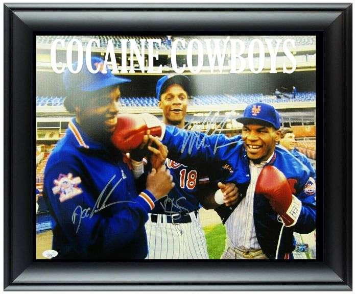 Mike Tyson Gooden Darryl Strawberry Autographed Framed Cocaine Cowboys Photo JSA