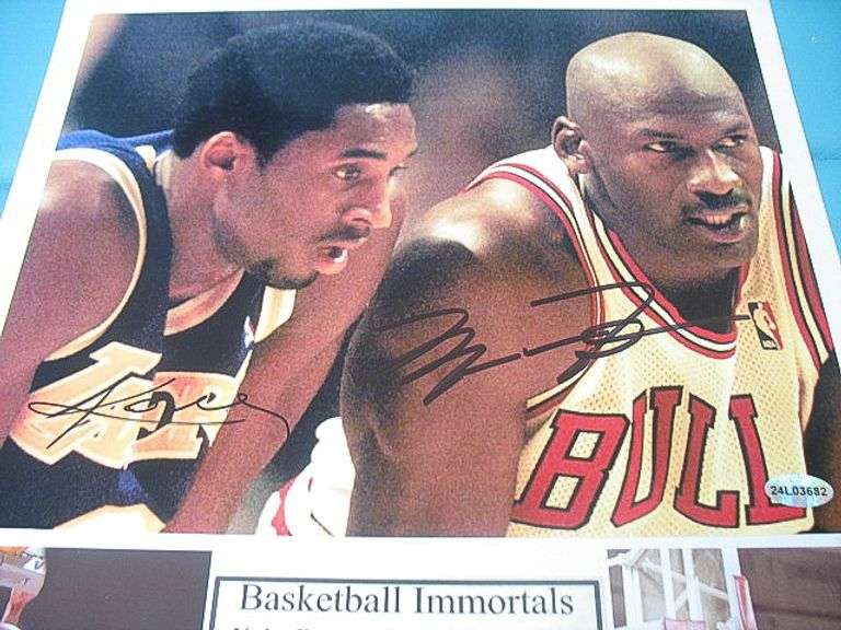 HAND SIGNED KOBE BRYANT AND MICHAEL JORDAN 8X10 MOUNTED ON A 11X14 DISPLAY WITH COA